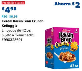 Cereal Raisin Bran Crunch Kellogg's Empaque de 42 oz.