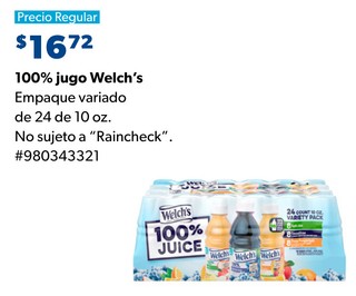 100% jugo Welch's Empaque variado de 24 de 10 oz.