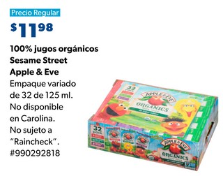 100% jugos orgánicos Sesame Street Apple & Eve Empaque variado de 32 de 125 ml.