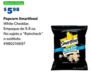 Popcorn Smartfood White Cheddar. Empaque de 9.8 oz.