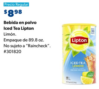 Bebida en polvo Iced Tea Lipton Limon Empaque de 89.8 oz.