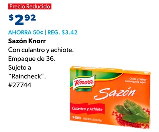 Sazon knorr con culantro y achiote. Empaque de 36. Sujeto a raincheck" #27744