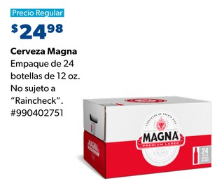 Cerveza magna empaque de 24 botellas de 12 oz. no sujeto a ´´raincheck´´. #990402751
