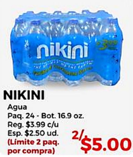 nikini agua bot. reg. $c/u esp. $ud. (lĂmite paq. compra)