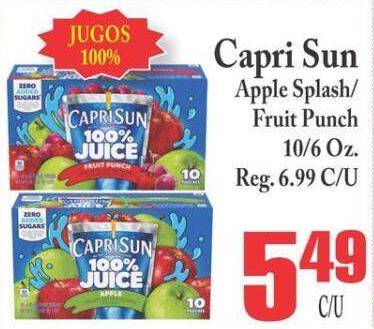 zero sugars jugos caprisun juice fruit punch capri apple splash/ reg.