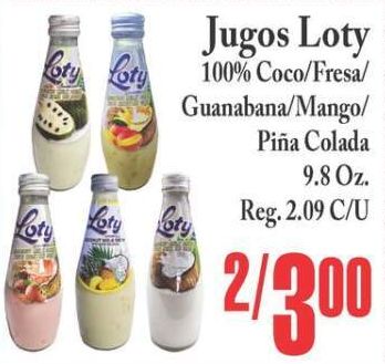 loty jugos coco/fresa/ guanabana/mango/ piƱa colada reg.