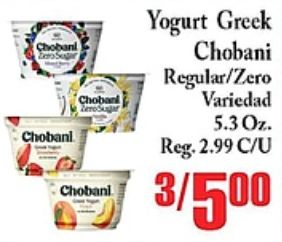 chobanl choban zeroskar chobani yogurt greek regular/zero variedad reg.