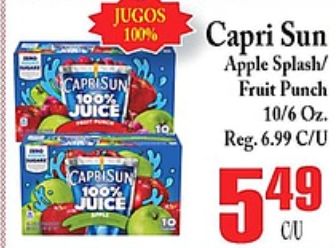 jugos caprisun juice capri apple splash/ fruit punch reg.