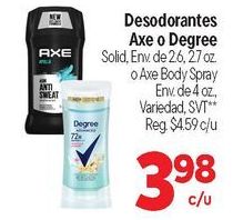 anti sweat degree desodorantes solid body spray env. variedad, svt** reg. $c/u