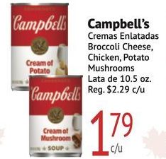 campbell campbell's cremas enlatadas broccoli cheese chicken, potato cream mushrooms lata reg. $c/u mushroom soup