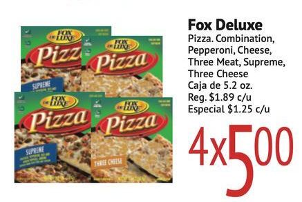 luxe pizze supreme line pizza three cheese deluxe combination pepperoni, cheese, meat, supreme, caja reg. $c/u especial