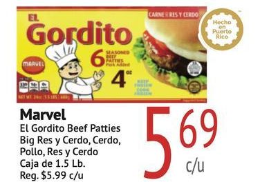 gordito marvel seasoned beef patties cerdo cerdo, pollo, caja reg. $c/u carne puerto rico