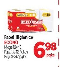 mega econo papel higiƩnico patede rollos reg. $pqte. pate.
