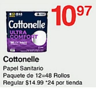 cottonelle ultra comfort papel sanitario paquete =rollos regular $*por tienda