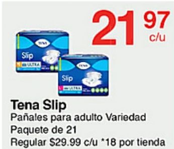 slip tena paƱales adulto variedad paquete regular $c/u *por tienda