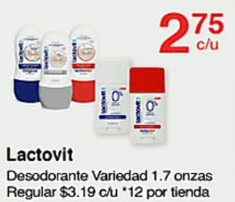 lactovit desodorante variedad onzas regular $c/u *por tienda