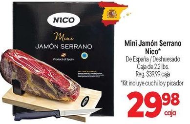 nico mini jamón serrano product spain nico* españa deshuesado caja reg. $caja *kit incluye cuchillo picador