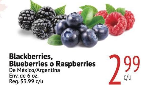 blackberries blueberries raspberries méxico/argentina reg. $c/u