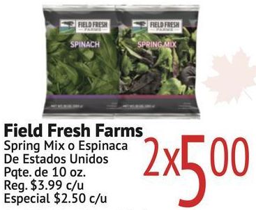 field fresh spinach spring farms espinaca unidos pqte reg. $c/u especial