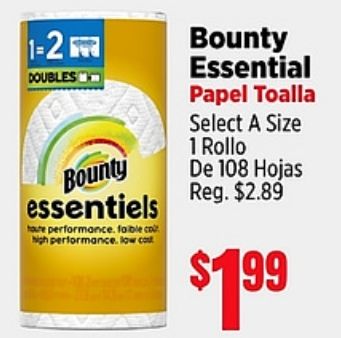 doubles bounty essentiels houre performance foible high performance. cost essential papel toalla select size rollo hojas reg.