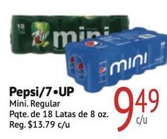 mini pepsi/⚫up regular pqte. latas reg. $c/u