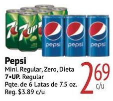 pepsi mini regular zero, dieta ⚫up. pqte. latas reg. $c/u