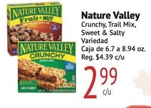 nature valley fruit crunchy trail mix, sweet salty variedad caja reg. $c/u