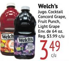 welch's jugo cocktail concord grape fruit punch, light env. welch reg. $c/u