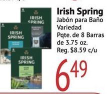 irish spring jabón baño variedad pqte barras reg. $c/u
