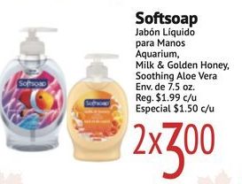 softsoap jabón líquido manos aquarium milk golden honey, soothing aloe vera reg. $c/u especial