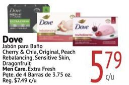 dove jabón baño cherry chia original, peach rebalancing, sensitive skin, dragonfruit care extra fresh pqte. barras reg. $c/u