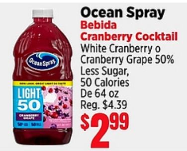 ocean spray bebida cranberry cocktail white grape less sugar calories light