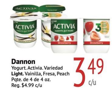 activia supports heath strawberry dannon yogurt activia. variedad light. vainilla fresa, peach pqte. reg. $c/u