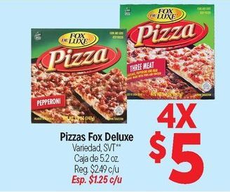 deluxe pizza luxe three meat pepperoni pizzas variedad svt** caja $c/u