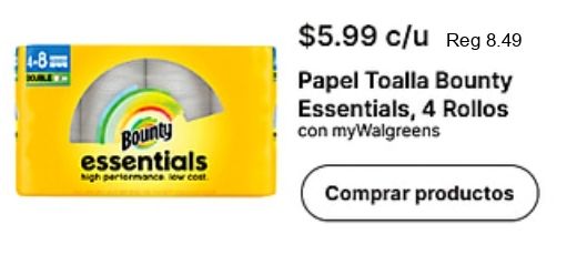 bounty essentials high performance cost $c/u papel toalla rollos mywalgreens comprar productos