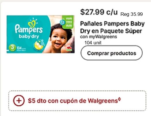 pampers baby $c/u pañales paquete súper mywalgreens unit comprar productos $dto cupón walgreens