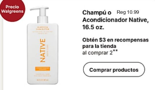 precio walgreens native champú acondicionador obtén recompensas tienda comprar productos