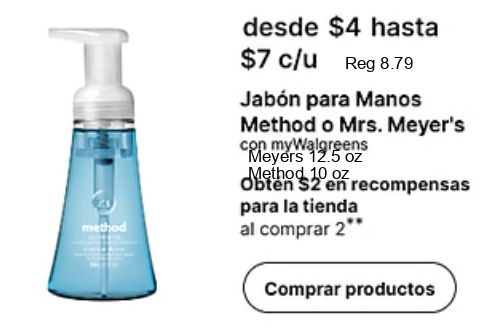 method $hasta $c/u jabón manos meyer's mywalgreens meyers obten recompensas tienda comprar productos