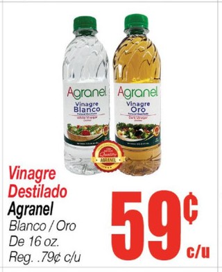 Vinagre Destilado Agranel Blanco/Oro De 16 oz.