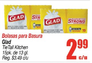 Bolsas para basura tie tall kitchen 15pk. De 13 gl.
