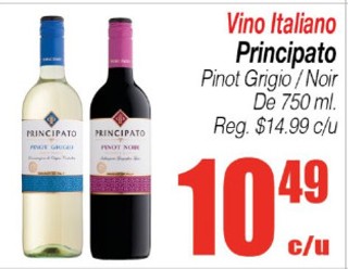 Vino italiano principato pinot grigio o noir de 750 ml.