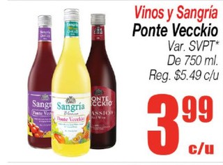 Vinos y sangria ponte vecckio var. SVPT* de 750 ml.