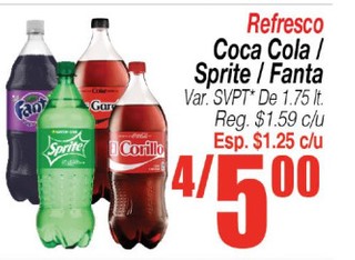 Refresco coca cola, sprite o fanta var. SVPT* de 1.75 lt.