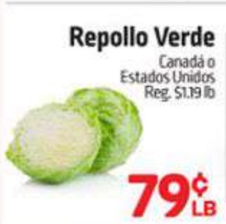 Repollo Verde Canadá o Estados Unidos Reg. $1.19 lo