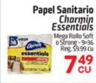 Papel sanitario charmin essentials mega rollo soft o strong.