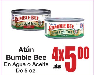 Atun bumble bee en agua o aceite de 5 oz.