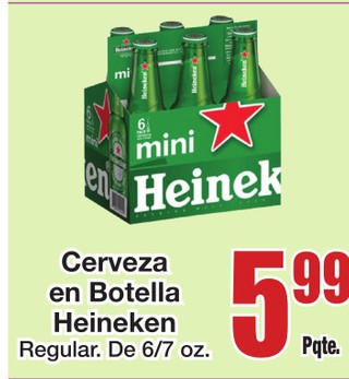 Cerveza en Botella Heineken Regular. De 6/7 oz.