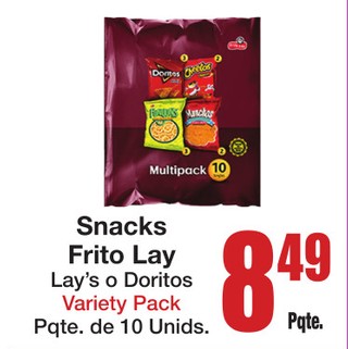Snacks Frito Lay Lay's o Doritos Variety Pack Pqte. de 10 Unids.