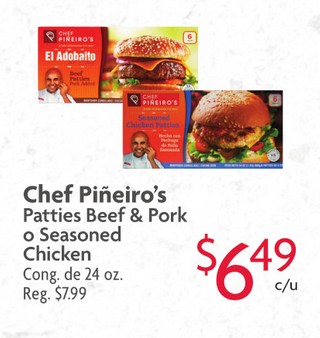 Chef Piñeiro's Patties Beef & Pork o Seasoned Chicken Cong. de 24 oz.
