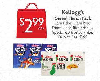 Kellogg's Cereal Handi Pack Corn Flakes, Corn Pops, Froot Loops, Rice Krispies, Special K o Frosted Flakes De 6 ct.